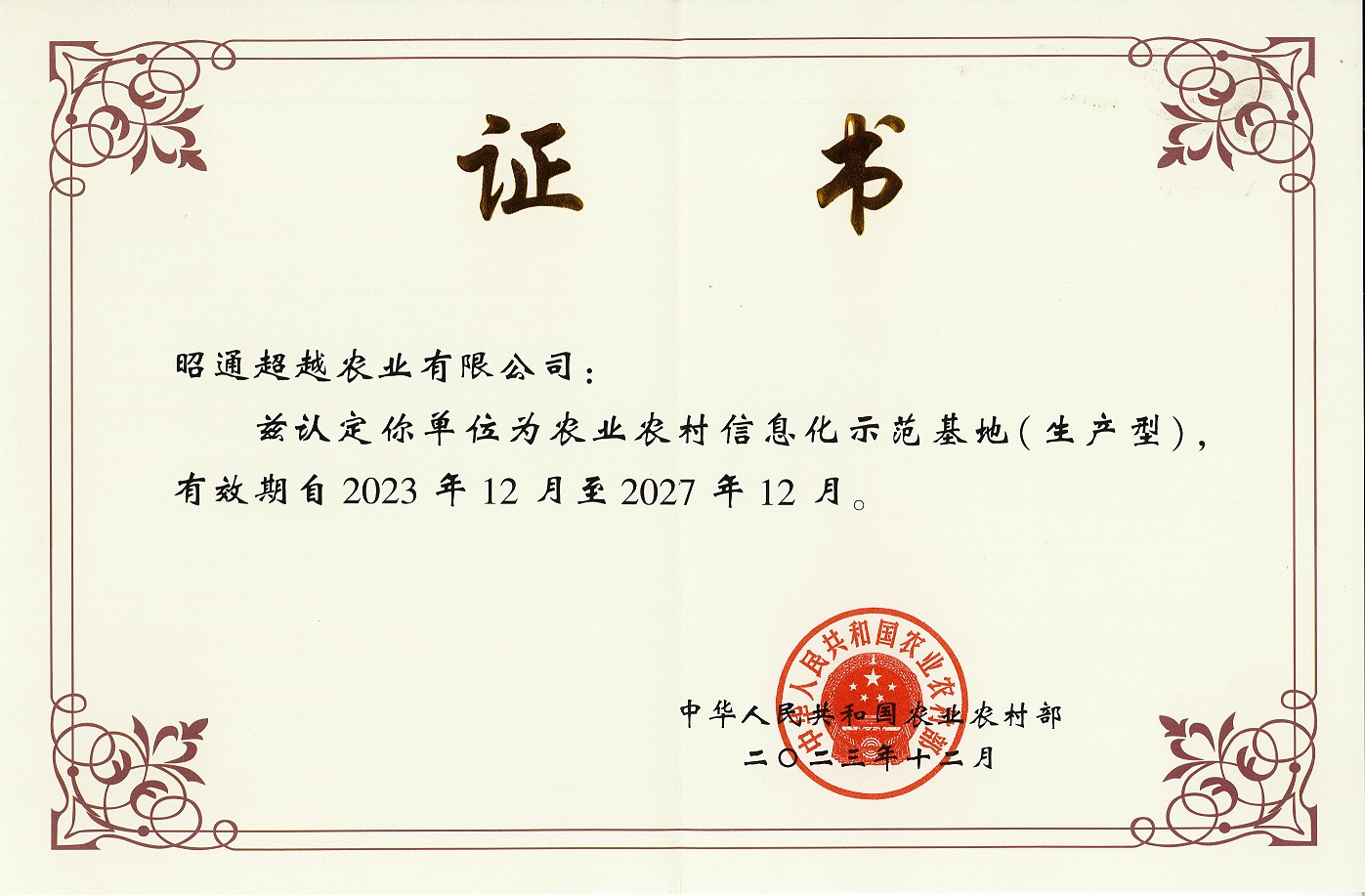全國(guó)農(nóng)業(yè)農(nóng)村信息化示范基地證書(shū)