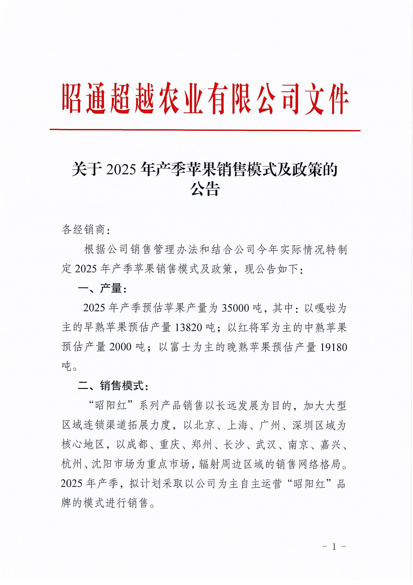 關(guān)于2025年產(chǎn)季蘋果銷售模式及政策的公告